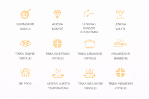 • Danga: keramika – marmuras, be PFOA.