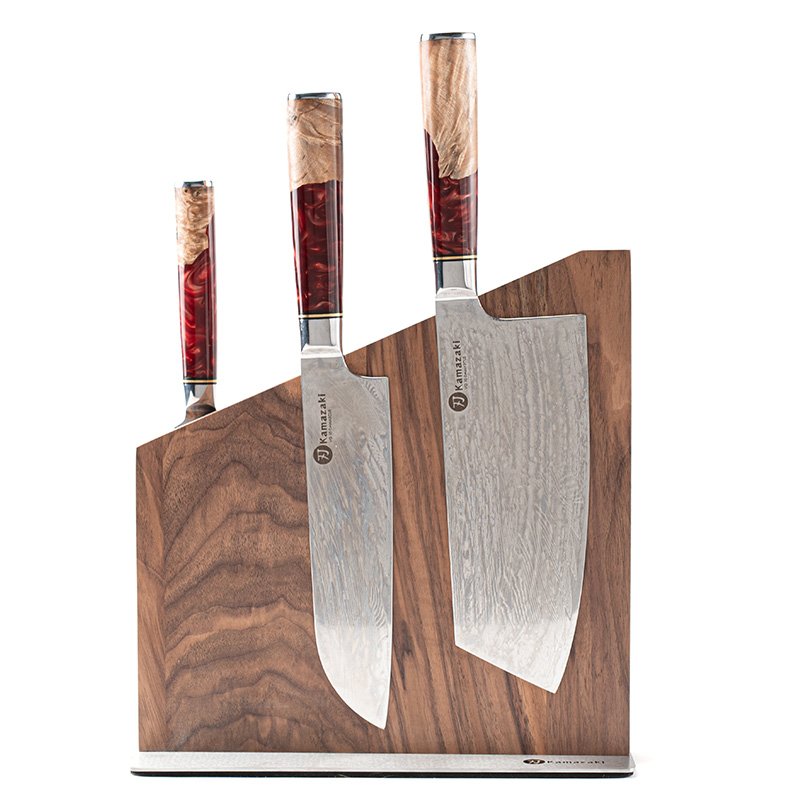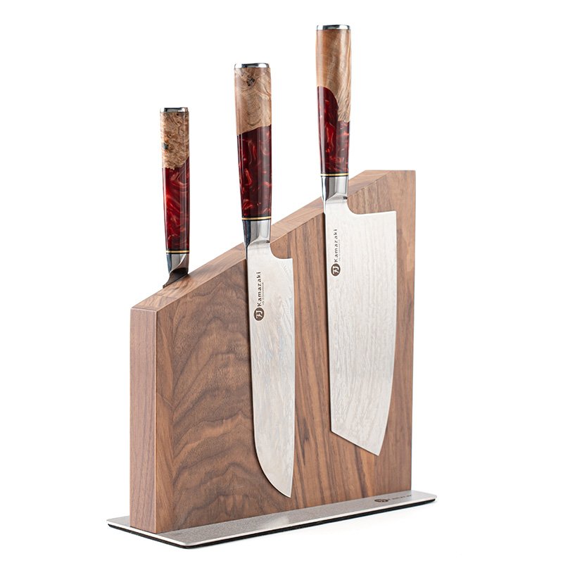 Stiprūs integruoti magnetai patikimai laiko peilius savo vietoje, neleidžia jiems slysti ar nukristi.